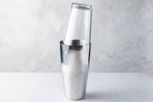 4、在摇壶中加入冰块,用力摇晃至少30秒。