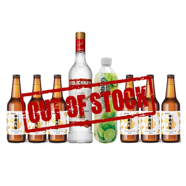 The bundle includes a full-sized bottle of Stoli, a bottle of lime juice, and 6 bottles of Earthen Roots Ginger Beer.